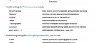 "DirectTraining" train directly on the full dataset, without model searching "Memory" minimize storage requirements of the predictor "Quality" maximize accuracy of the predictor "Speed" maximize speed of the predictor "TrainingSpeed" minimize time spent producing the predictor Automatic automatic tradeoff among speed, accuracy and memory {goal1,goal2,…} automatically combine goal1, goal2, etc. - The following settings for TrainingProgressReporting can be used: