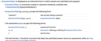 - In QuestionObject[q,assess], q accepts the following form: