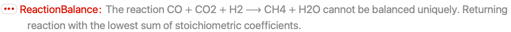 Wolfram Language. (2021). ReactionBalance. Wolfram Language & System Documentation Center. Retrieved from https://reference.wolfram.com/language/ref/ReactionBalance.html