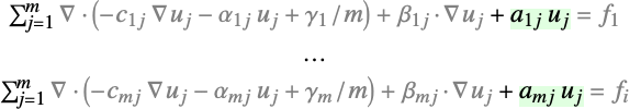 scalar a - For a system of PDEs with dependent variables {u1,…,um}, the reaction represents: