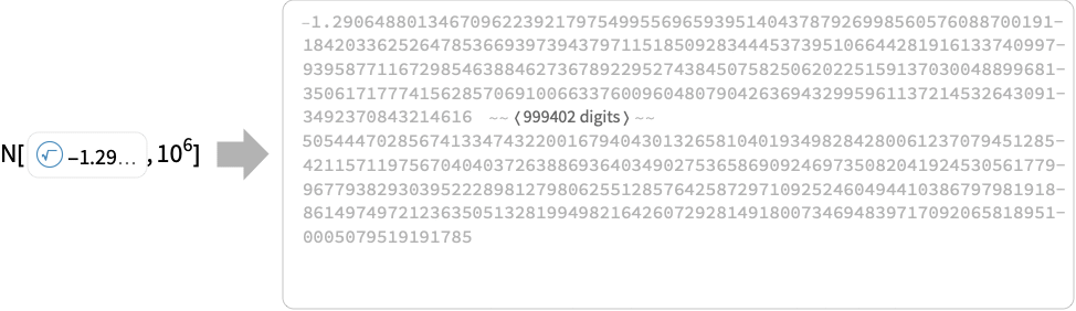 Here, the Root[f,k] representation would involve a polynomial of degree 1000000: