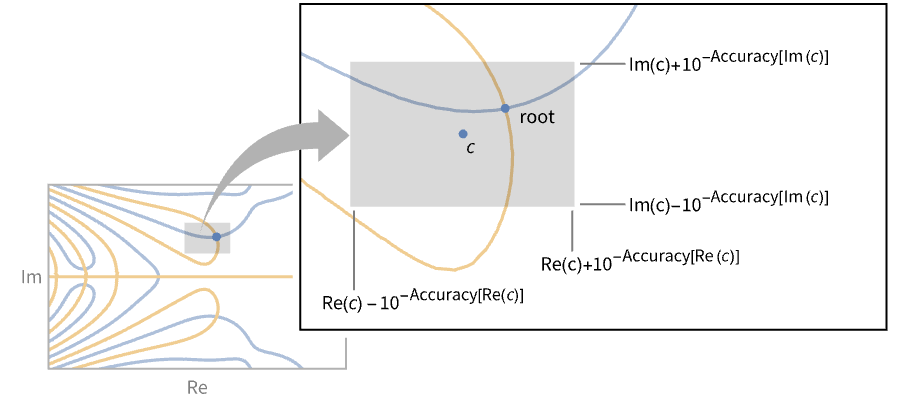 . - The root neighborhood representation for systems Root[{{f1,…,fn},{c1,…,cn}},j] similarly specifies a system of equations {f1[x1,…,xn]0,…,fn[x1,…,xn]0} and a neighborhood given by the product of rectangles from ci for the different coordinates.