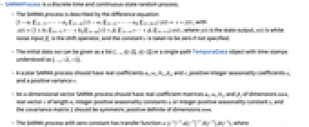 - A scalar SARMA process should have real coefficients ai, αi, bj, βj, and c, positive integer seasonality coefficients s, and a positive variance v.