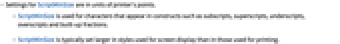 - ScriptMinSize is typically set larger in styles used for screen display than in those used for printing.