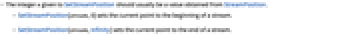 - The integer n given to SetStreamPosition should usually be a value obtained from StreamPosition.