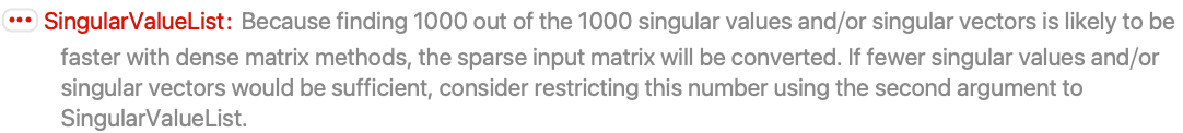 - SingularValueList[m,Tolerance->t] keeps only singular values that are at least t times the largest singular value.