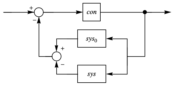 - Block diagram of a Smith predictor with controller con and system model sys, where sys0 denotes all delays being set to zero: