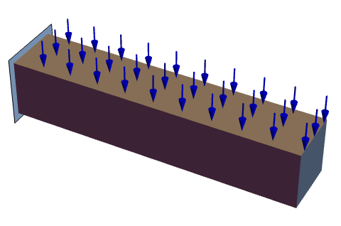 Compute the deflection of a beam held fixed at the left end and with a pressure applied in the negative