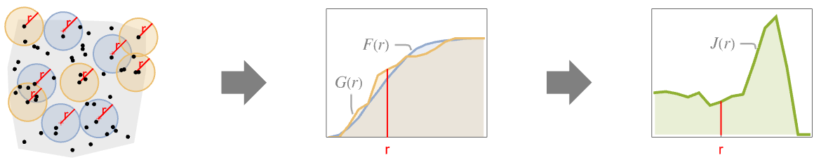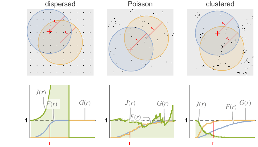 more clustered than Poisson - The radius r can be a single value or a list of values. With no radius r specified, SpatialJ returns a PointStatisticFunction that can be used to evaluate the