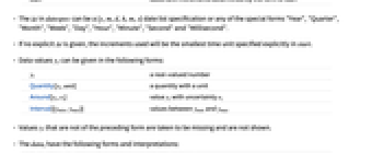 - If no explicit Δt is given, the increments used will be the smallest time unit specified explicitly in start.