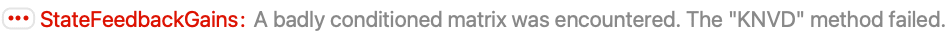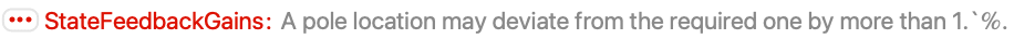 - StateFeedbackGains works by modifying the closed-loop system poles to be at positions pi.