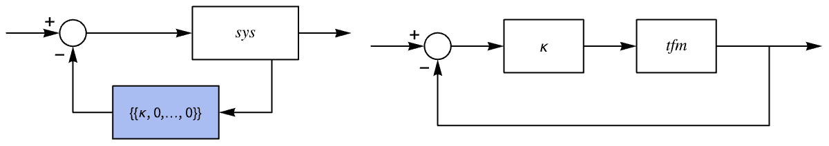 For this realization, the state feedback gains are of the form {{κ,0,…,0}}: