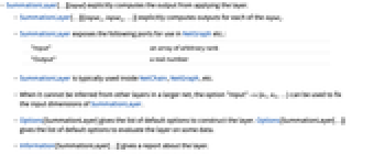 - Information[SummationLayer[…],prop] gives the value of the property prop of SummationLayer[…]. Possible properties are the same as for NetGraph.