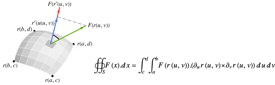 is given by: - The vector surface integral is independent of the parametrization, but depends on the orientation.