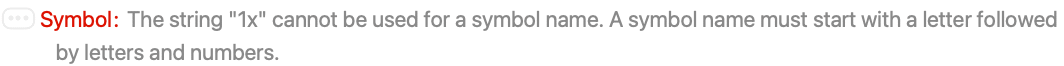 - The string "name" in Symbol["name"] must be an appropriate name for a symbol. It can contain any letters, letter‐like forms, or digits, but cannot start with a digit.