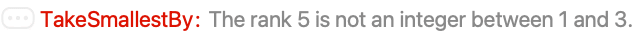 - TakeSmallestBy gives the elements ei in the first level of the input data corresponding to the smallest f[ei] values.