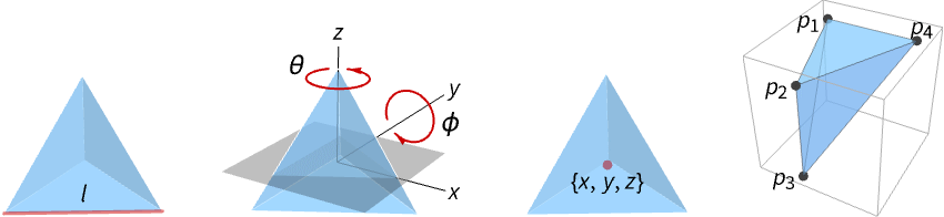 - Tetrahedron[l] is equivalent to Tetrahedron[{0,0,0},l].