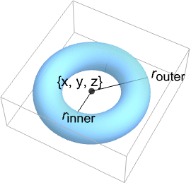 represents a torus centered at {x,y,z} with inner radius rinner and outer radius router.