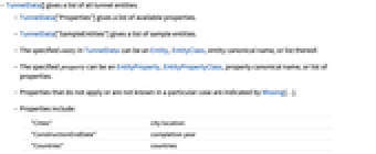 - TunnelData["SampleEntities"] gives a list of sample entities.