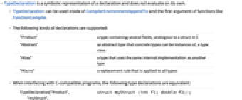- TypeDeclaration is a symbolic representation of a declaration and does not evaluate on its own.