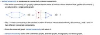- VertexConnectivity is also known as connectivity or point connectivity.