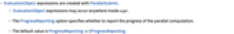 - The ProgressReporting option specifies whether to report the progress of the parallel computation.