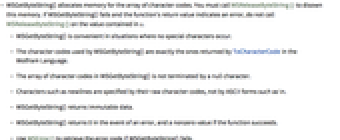 - The array of character codes in WSGetByteString() is not terminated by a null character.