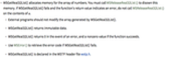 - WSGetReal32List() allocates memory for the array of numbers. You must call WSReleaseReal32List() to disown this memory. If WSGetReal32List() fails and the function's return value indicates an error, do not call WSReleaseReal32List() on the contents of a.