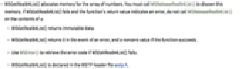 - WSGetReal64List() allocates memory for the array of numbers. You must call WSReleaseReal64List() to disown this memory. If WSGetReal64List() fails and the function's return value indicates an error, do not call WSReleaseReal64List() on the contents of a.