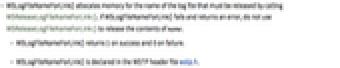- WSLogFileNameForLink() returns 1 on success and 0 on failure.