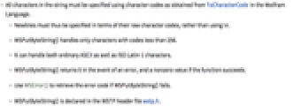 - All characters in the string must be specified using character codes as obtained from ToCharacterCode in the Wolfram Language.