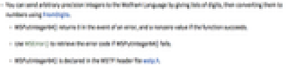 - WSPutInteger64() returns 0 in the event of an error, and a nonzero value if the function succeeds.