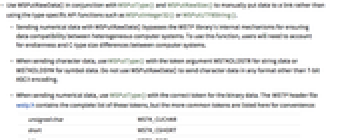 - Sending numerical data with WSPutRawData() bypasses the WSTP library's internal mechanisms for ensuring data compatibility between heterogeneous computer systems. To use this function, users will need to account for endianness and C-type size differences between computer systems.