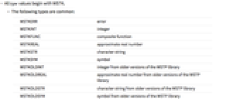 WSTKERR error WSTKINT integer WSTKFUNC composite function WSTKREAL approximate real number WSTKSTR character string WSTKSYM symbol WSTKOLDINT integer from older versions of the WSTP library WSTKOLDREAL approximate real number from older versions of the WSTP library WSTKOLDSTR character string from older versions of the WSTP library WSTKOLDSYM symbol from older versions of the WSTP library - WSTKINT and WSTKREAL do not necessarily signify numbers that can be stored in C int and double variables.