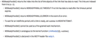 - WSReadyParallel() returns WSREADYPARALLELTIMEDOUT if no link has data to read after the timeout period expires.