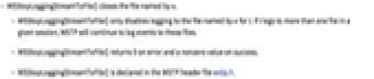- WSStopLoggingStreamToFile() returns 0 on error and a nonzero value on success.