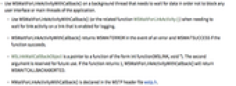 - Use WSWaitForLinkActivityWithCallback() on a background thread that needs to wait for data in order not to block any user interface or main threads of the application.