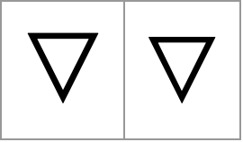 Characters: \[EmptyUpTriangle] \[FilledDownTriangle] \[FilledUpTriangle] \[LeftTriangle] \[NotLeftTriangle] \[NotRightTriangle] \[RightTriangle] \[Del]