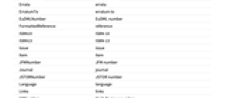 ASIN ASIN AssociatedPeople associated people AssociatedResults associated results Authors authors BookTitle book title Chapter chapter ChapterIn chapter in CommunicationDate communication date DOI DOI Editors editors EntityClasses entity classes EntityTypeList entity type list ERAMNumber ERAM number Errata errata ErratumTo erratum to EuDMLNumber EuDML number FormattedReference reference ISBN10 ISBN‐10 ISBN13 ISBN‐13 Issue issue Item item JFMNumber JFM number Journal journal JSTORNumber JSTOR number Language language Links links MRNumber Math Reviews number Name name Number number PageCount page count PageRange page range PrefacePageCount preface page count ProblemNumber problem Proposers proposers PublicationCity publication city PublicationDate publication date PublicationType publication type Publisher publisher ReprintOf reprint of Reprints reprints Solvers solvers Status status ThesisType thesis type Title title TranslationOf translation of Translations translations Translators translators URL URL Volume volume VolumeCount volume count ZblNumber Zentralblatt number