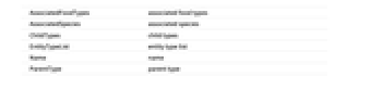 AssociatedFoodTypes associated food types AssociatedSpecies associated species ChildTypes child types EntityTypeList entity type list Name name ParentType parent type