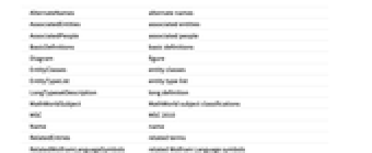AlternateNames alternate names AssociatedEntities associated entities AssociatedPeople associated people BasicDefinitions basic definitions Diagram figure EntityClasses entity classes EntityTypeList entity type list LongTypesetDescription long definition MathWorldSubject MathWorld subject classifications MSC MSC 2010 Name name RelatedEntries related terms RelatedWolframLanguageSymbols related Wolfram Language symbols TypesetDescription definition URL URL