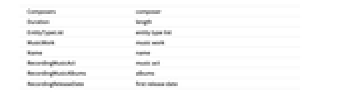 Composers composer Duration length EntityTypeList entity type list MusicWork music work Name name RecordingMusicAct music act RecordingMusicAlbums albums RecordingReleaseDate first release date