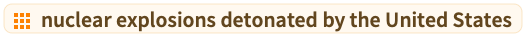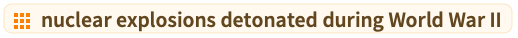 - "NuclearExplosion" entities include explosions from nuclear weapons that were detonated during a war or as part of nuclear weapons testing.
