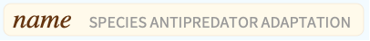 EntityClass["SpeciesAntipredatorAdaptation",{propispeci,…}]