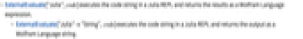- ExternalEvaluate["Julia""String",code] executes the code string in a Julia REPL and returns the output as a Wolfram Language string.
