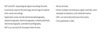 - Commonly used for the exchange and storage of medical time-series recordings.