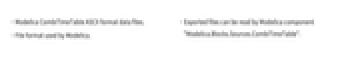 - Exported files can be read by Modelica component "Modelica.Blocks.Sources.CombiTimeTable".