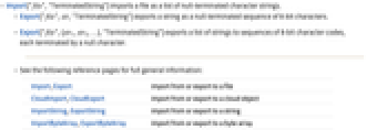 Import, Export import from or export to a file CloudImport, CloudExport import from or export to a cloud object ImportString, ExportString import from or export to a string ImportByteArray, ExportByteArray import from or export to a byte array