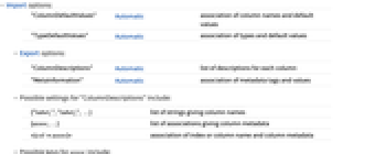 "ColumnDescriptions" Automatic list of descriptions for each column "MetaInformation" Automatic association of metadata tags and values - Possible settings for "ColumnDescriptions" include: