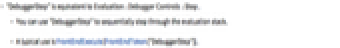 - "DebuggerStep" is equivalent to Evaluation ▶ Debugger Controls ▶ Step.